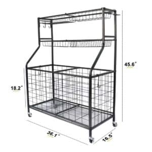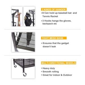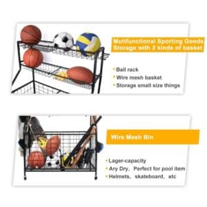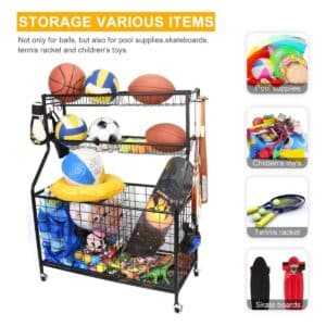 - The rolling sports ball organizer with 4 heavy-duty wheels, Indoor & Outdoor Design, which is easy to move the organizer anywhere and fits in a specific position.