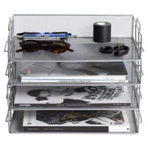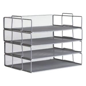 Our stackable trays and no tools required Comes with 4 stackable trays. Simply stack the trays to create up to 4 tiers. No tools required DIMENSIONS – 13.75” L x 9.75” W x2.75” D (each tray) Lightweight yet sturdy steel construction Sturdy design to store any A4 size files, documents, folders, papers, stationery, mail, magazines, books and more. Multi-purpose tray organizer for your home or business With a contemporary and elegant design this tray organizer will enhance your workspace and complements any décor.