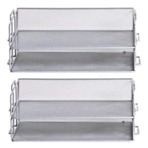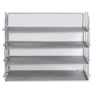 - PRODUCT SIZE & MATERIAL: 13.5″ x 9.75″ x 2.75″ Each tray l 4 easy access mesh stackable trays- Silver l Sturdy steel silver mesh construction.No Assembly required. Very easy to set up.